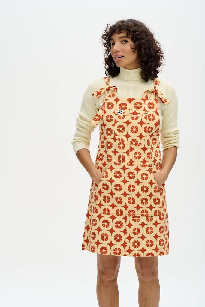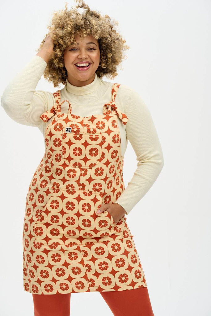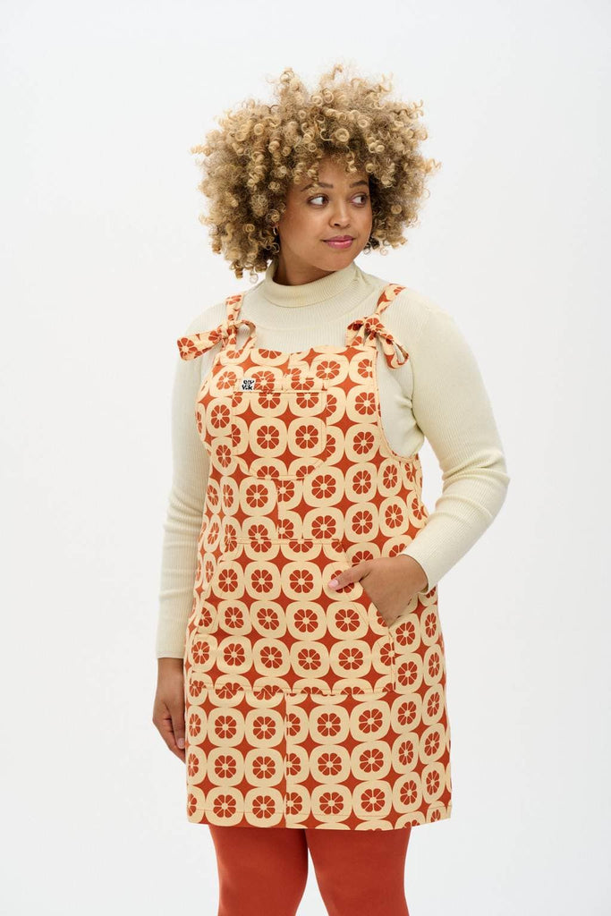 A longer length than our mini pinis (by 3 inches!) this will come on average to just above the knee! She has our signature tie straps, a chest pocket with tuck detail a lower apron pocket. Layer her over your fave tees and jumpers, dress her up with smart shoes or down with converse, style with our without a belt!