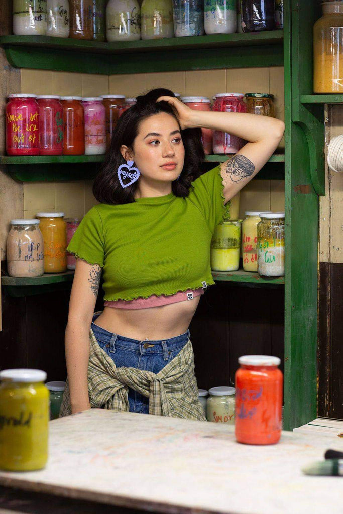 Cute Ari tee! We have added 2cm to the length off all our Ari Tees. Lettuce hem and sleeves with a cropped, tight fit - size up for a more relaxed shape.