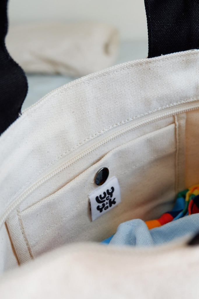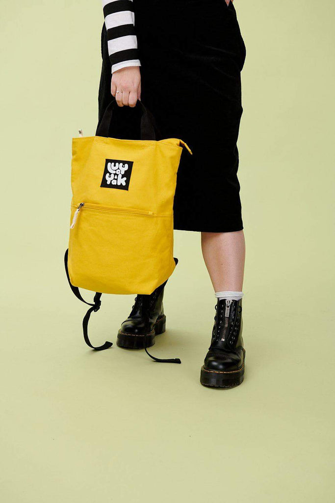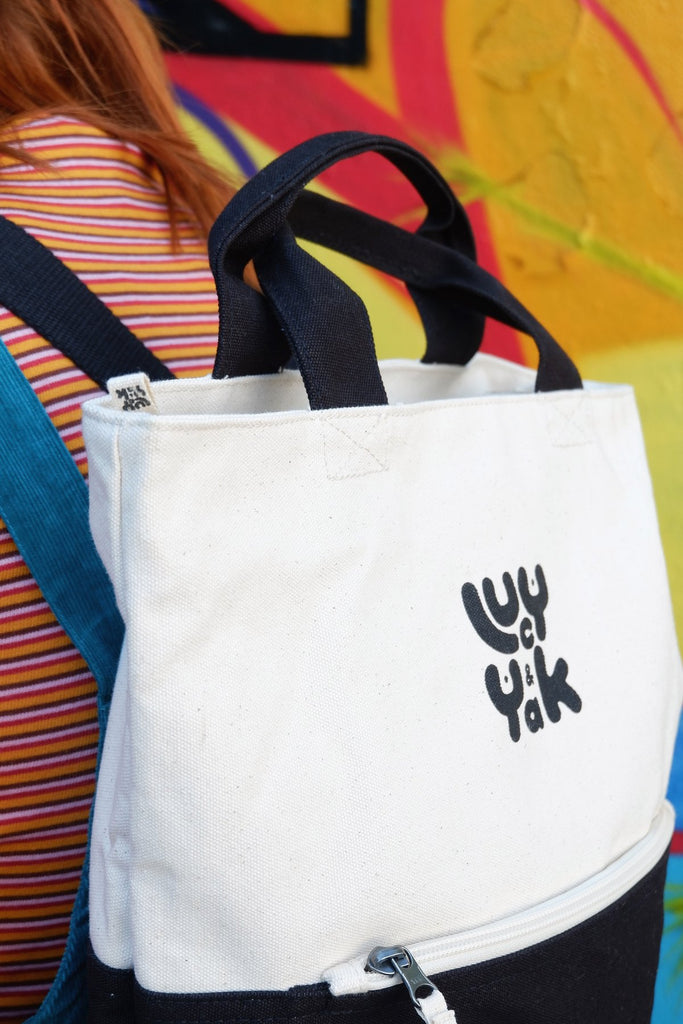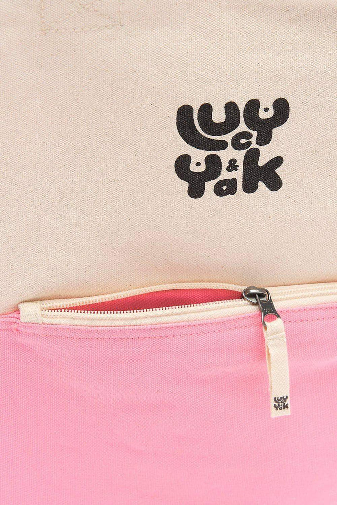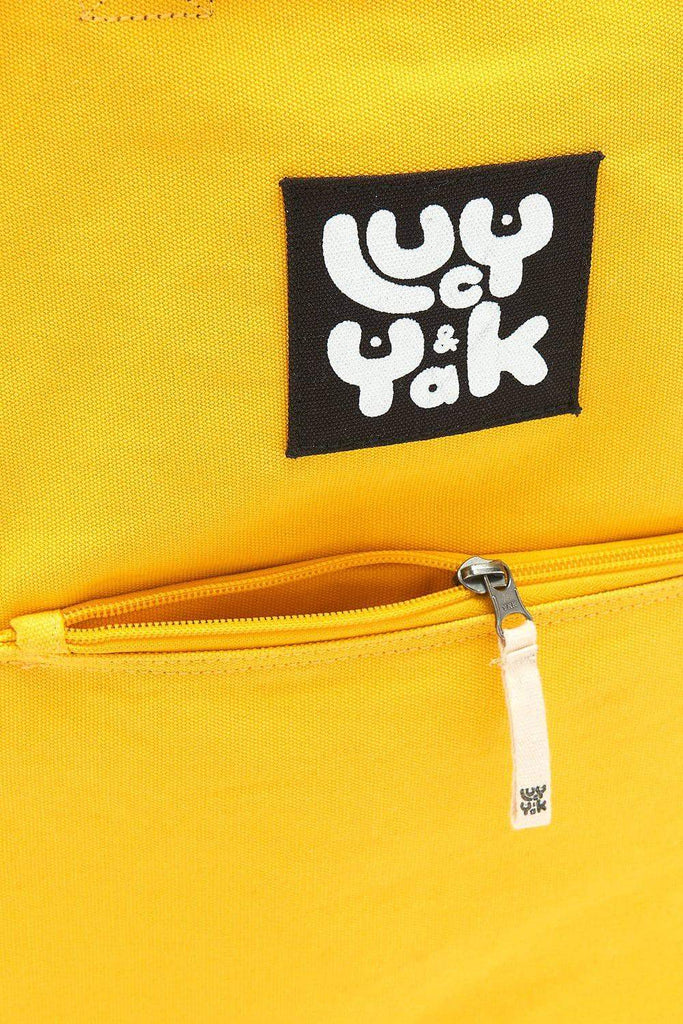 External zip pocket and 1 internal button pocket for your coins and keys. Main compartment has a top zip. The perfect travel bag, uni bag, school bag, work bag, put everything-in-it bag! And, of course, tops off any Lucy & Yak outfit perfectly.