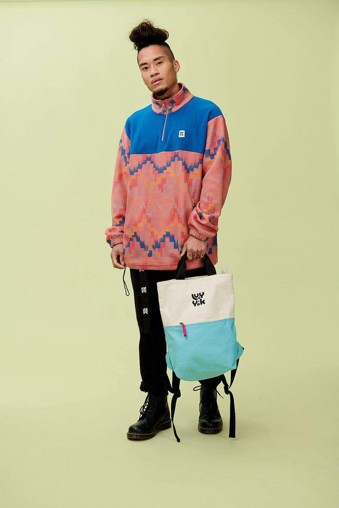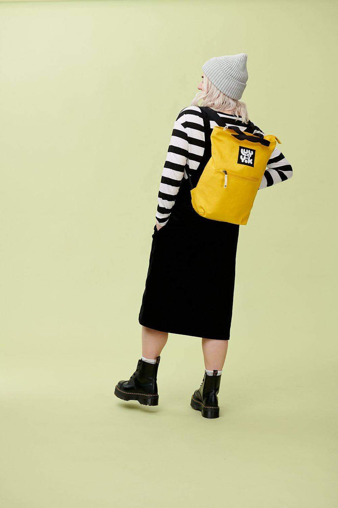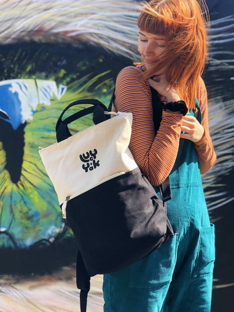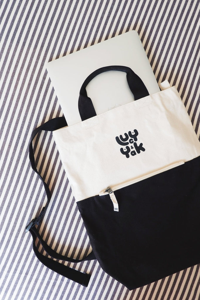 External zip pocket and 1 internal button pocket for your coins and keys. Main compartment has a top zip. The perfect travel bag, uni bag, school bag, work bag, put everything-in-it bag! And, of course, tops off any Lucy & Yak outfit perfectly.