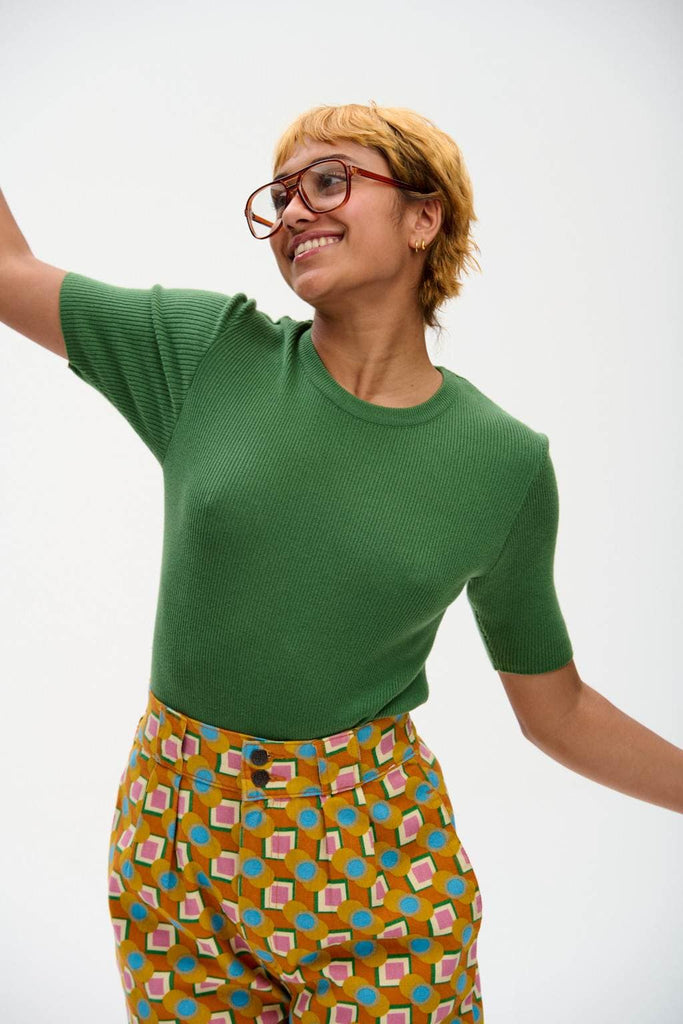 Super soft, stretchy ribbed fabric, scooped V neck and cropped cut. Perfect for adding a pop of colour to your outfit, layering up in colder months, or rocking on its own in the summer! We're also seeing her layered under mesh tops or even used as a super comfy relaxed bra!
